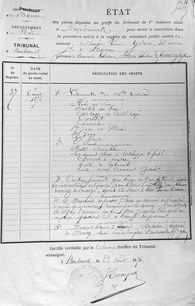 Au Parquet de la Cour de Douai le 16 7bre 1876