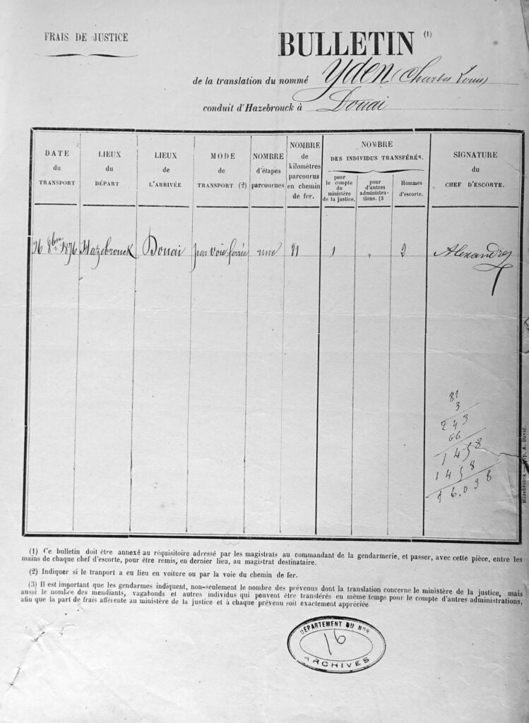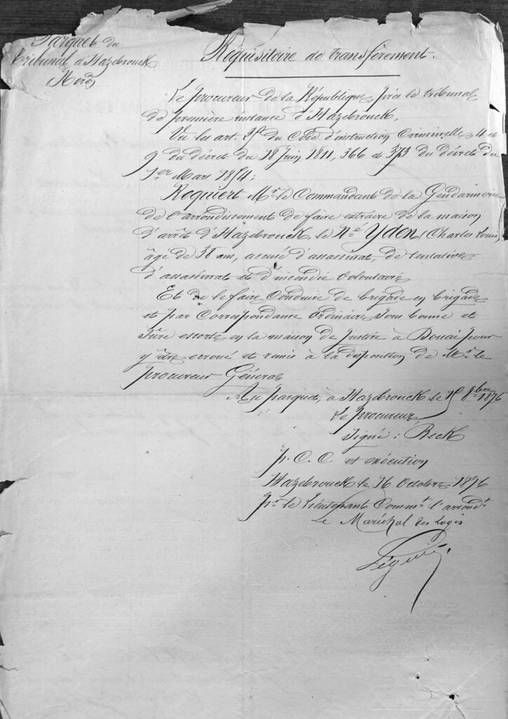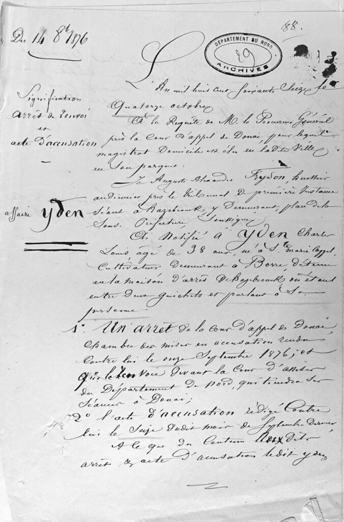 Le 14 octobre, Louis Yden est signifié par huissier de l’arrêt de l’arrêt de la cour d’appel ainsi que de l’acte d’accusation.